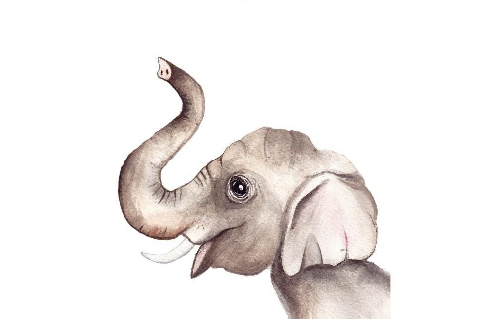 Kaart van lieve olifant, handgeschilderd met waterverf. Verras iemand met deze kaart, of lijst hem in voor eigen gebruik.