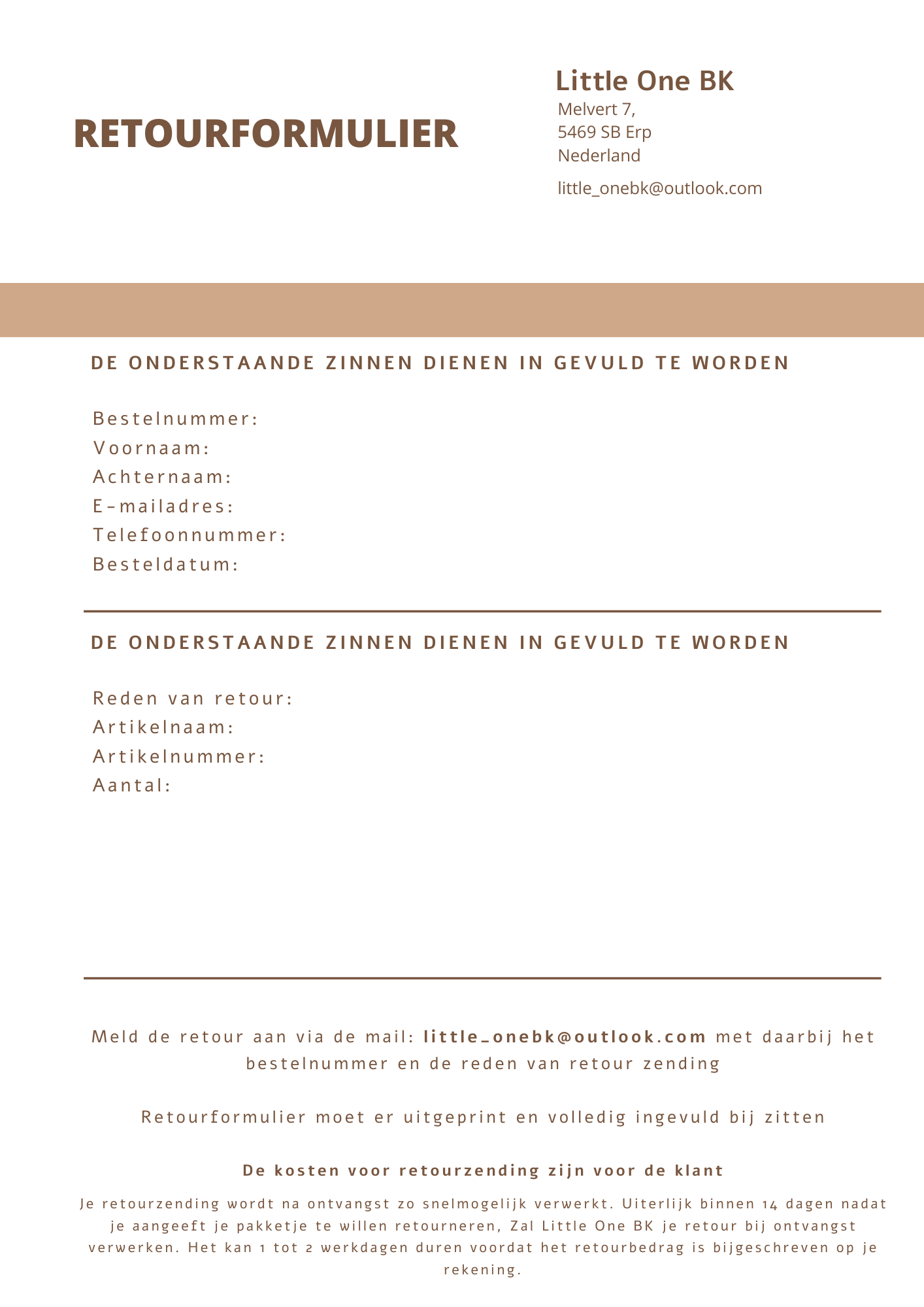 Retourformulier Little One BK